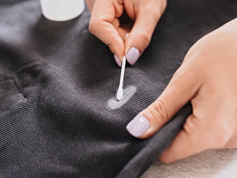 4. استفاده از الکل یا استون: برای چسب‌های مصنوعی یا ناخن، می‌توانید از استون یا الکل ایزوپروپیل استفاده کنید. اما ابتدا حتماً آن را روی بخش کوچکی از لباس تست کنید.